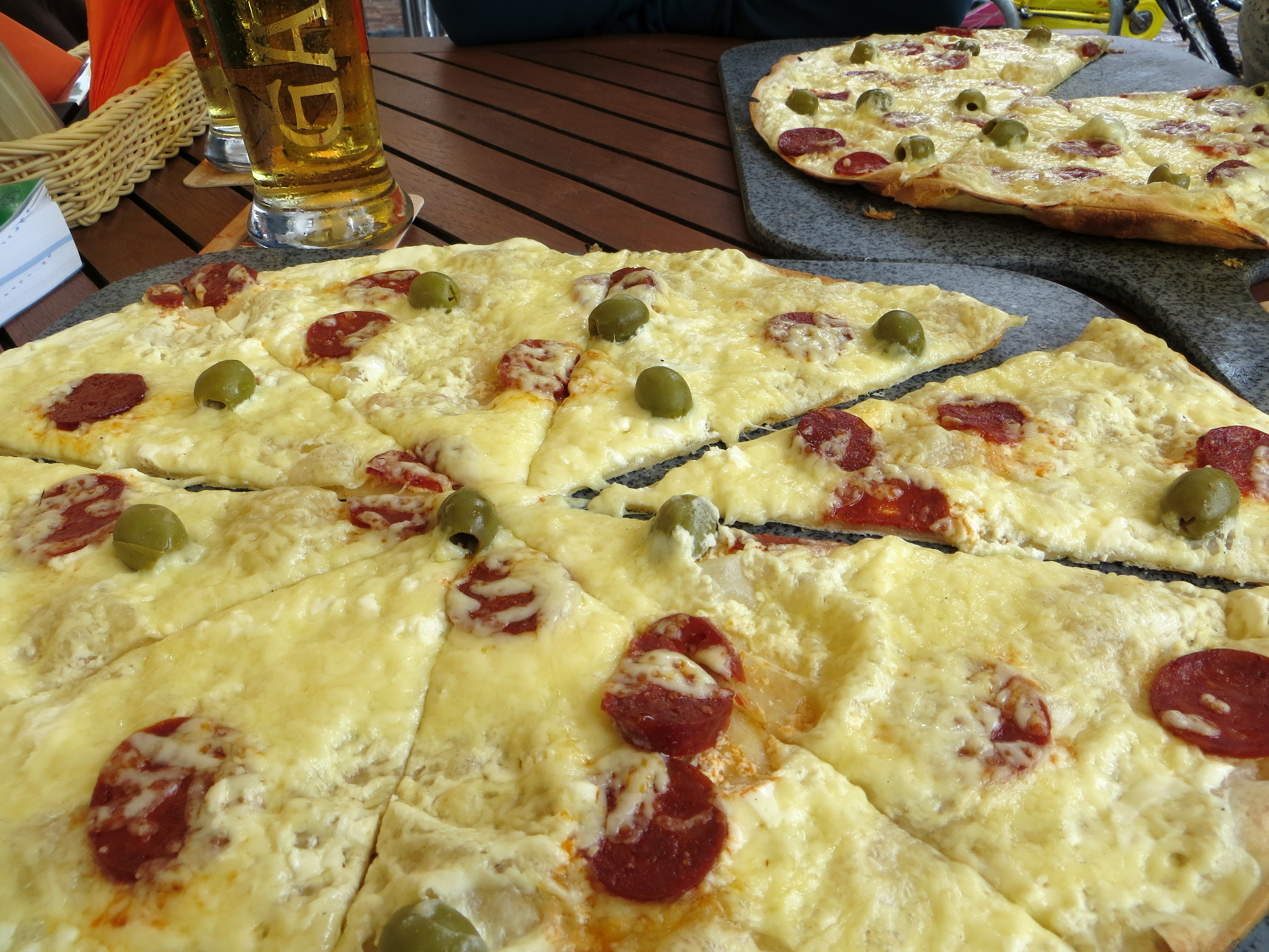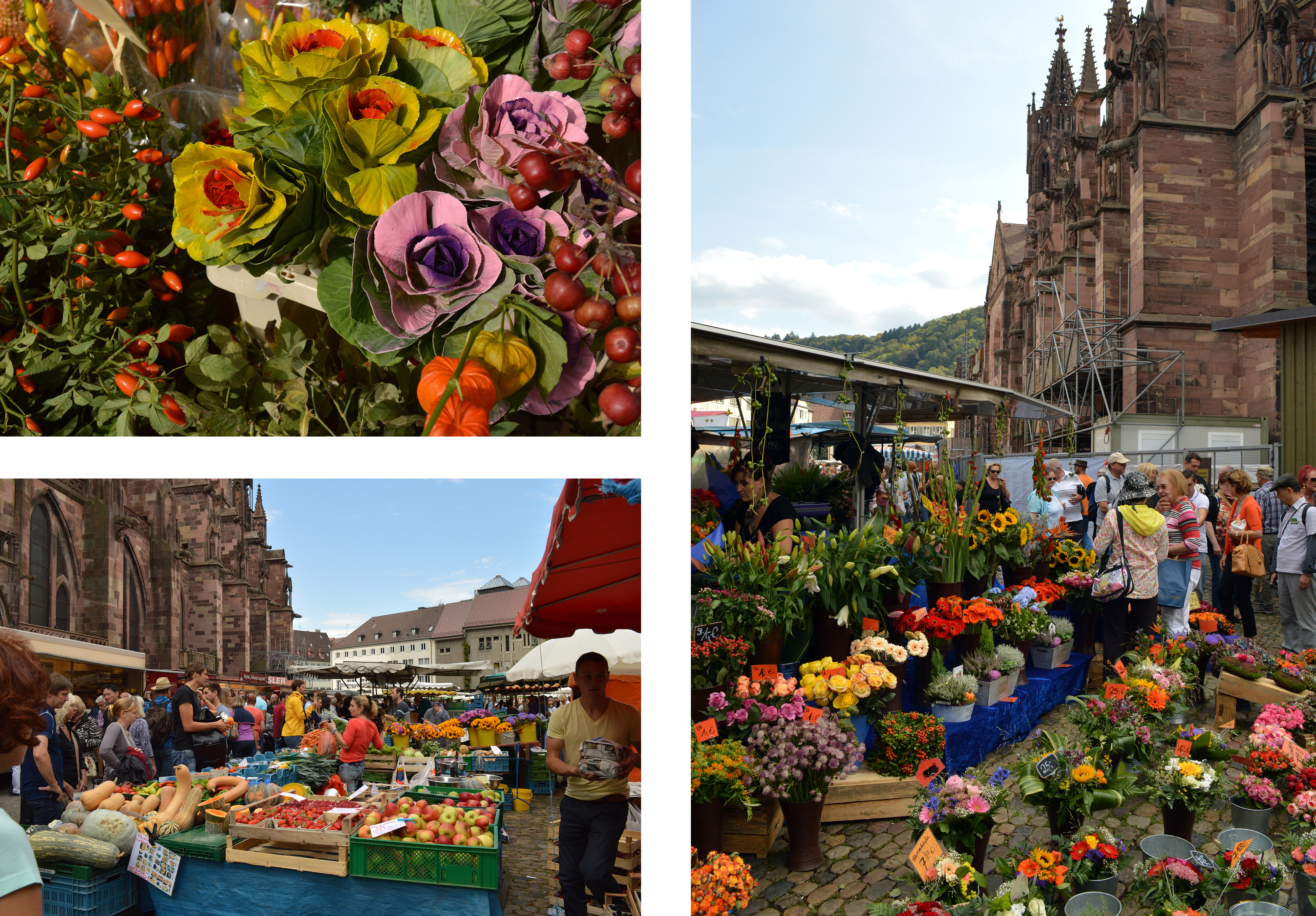 I’ve mentioned this before, but Freiburg teems with people at all hours, from dawn until well after dusk. Weekday nights and weekends especially bring everyone out of the woodwork, dropping them on the cobbled sidewalks instead of sending them running for their pajamas and couches and Netflix. Large cities have never been my friend in the past, because even though you’re surrounded by people, it can be the loneliest thing in the world for every one of those faces to be unfamiliar. But here, from day one, I recognized passersby, whether from classes or SLI events or even just people I’d never actually met but had seen before. Sometimes I hop aboard a tram and hear my name (and I know it’s me, since I don’t have a European name). Other times I’m sitting at a streetside café eating Flammkuchen (below right) and look up to a wave from someone walking by. It has a fantastic feeling of community to it, even moreso than the suburbs I once inhabited. There’s even a community garden in front of the theater (which is next to the library) where anyone can go and pick fruits and vegetables for free.