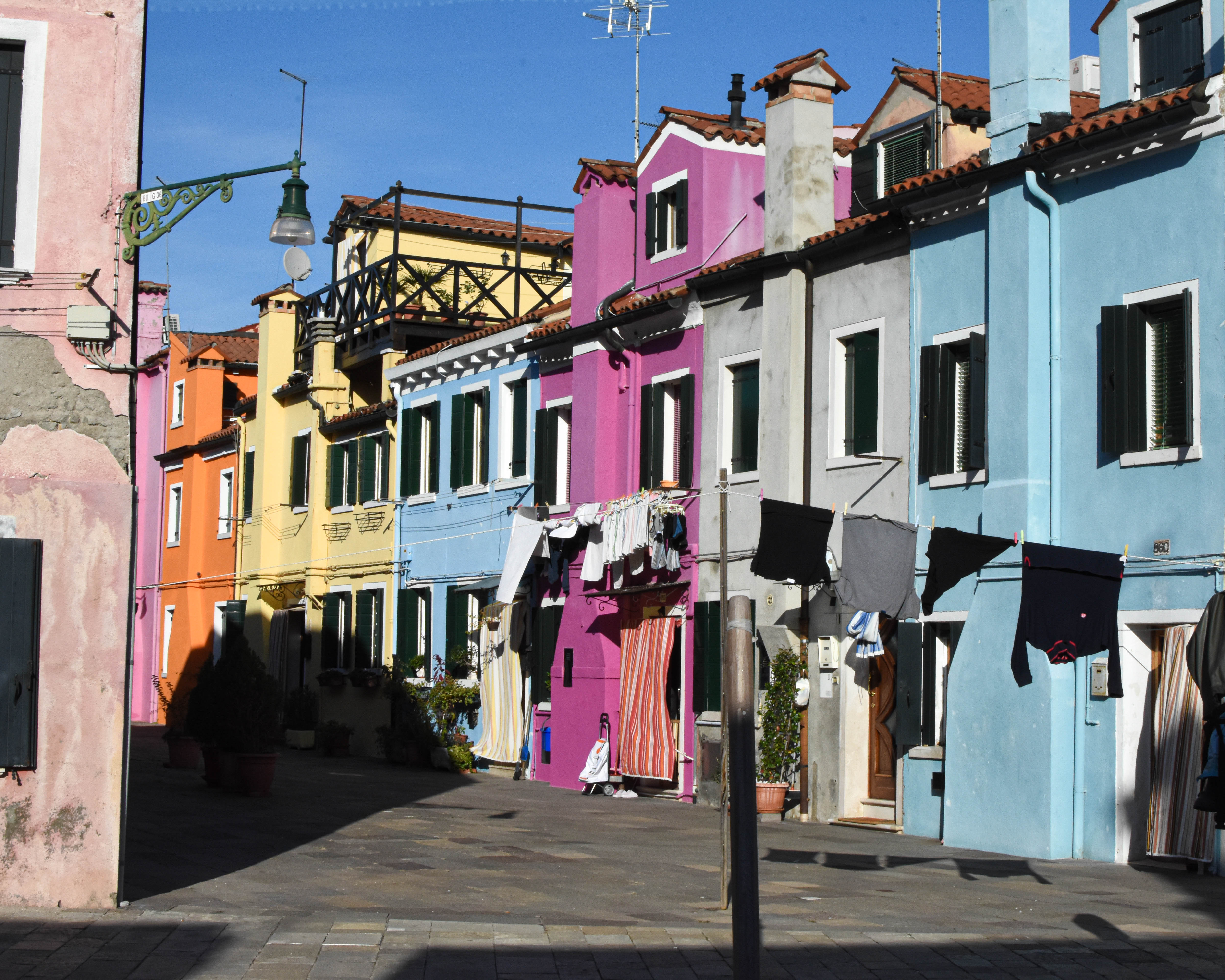 If Venetian mazes had lulled me into calm, Burano’s streets put me in a straight-up trance. For reasons kind of lost to history, Burano’s houses have all been painted in aggressively bright hues. Magenta and lavender and lime and azul were smashed up against each other in dizzying succession. The saturation was doubled by the golden rays of the fall afternoon sun, then quadrupled by reflections in the canals. Entire piazzas of primary colors stood empty, save for brilliant light and a line or two of drying clothes blowing gently in the breeze. I paused by the edge of the open lagoon to give my dazzled eyes a break, and there I witnessed an entirely different but equally curious sight: a pair of teenage boys were drag-racing their family boats just offshore, blaring AC/DC from Bluetooth speakers.