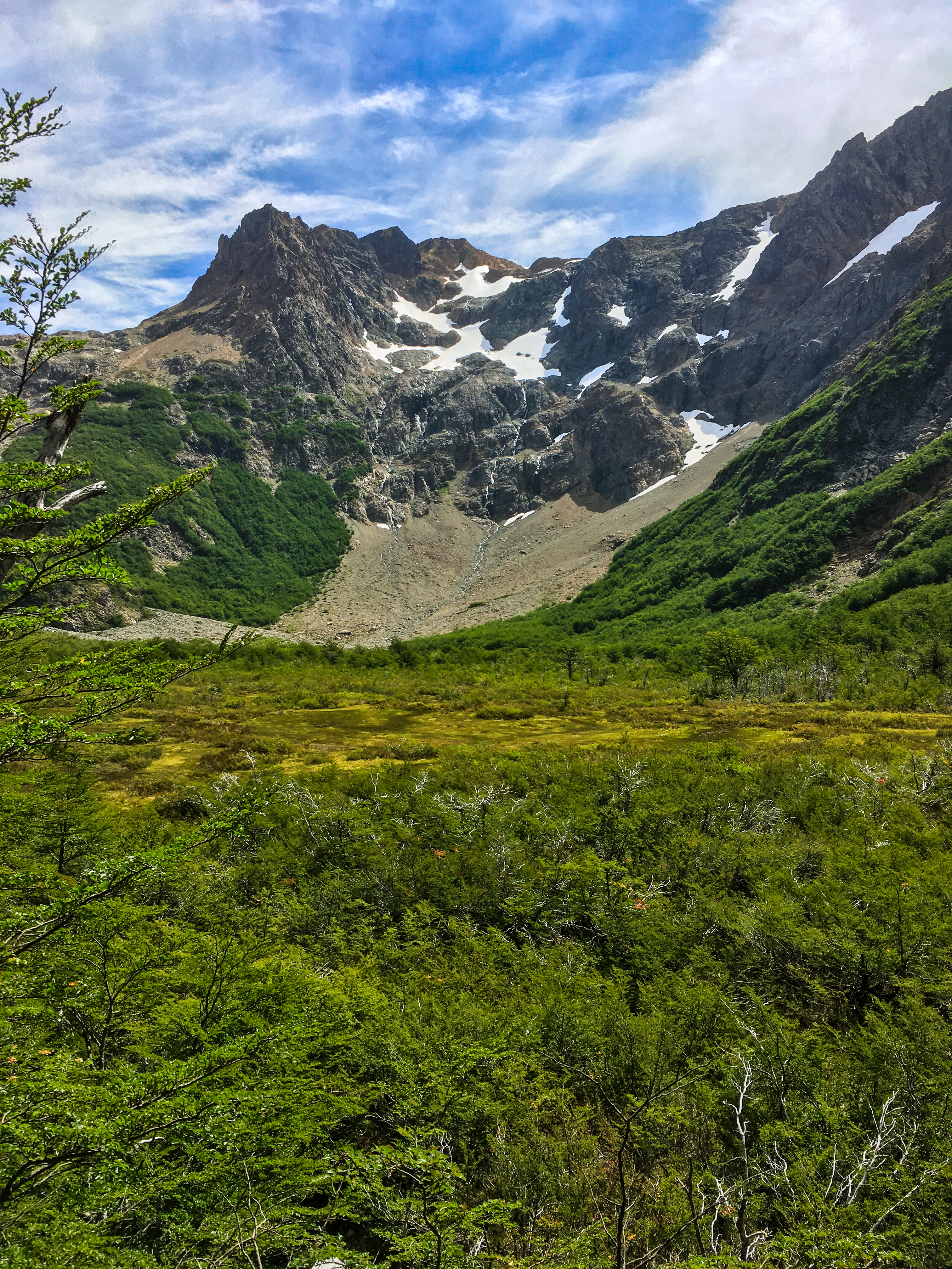After swinging by the refugio to pick up my pack, I am on my way back down to El Bolsรณn. Just to reiterate: I am on my way back down. I’d decided to return by a different route so I wouldn’t have to retrace my steps from yesterday, and obviously because yesterday had been a unidirectional slog uphill, today would be unidirectionally down, right? HAHA, NOPE. Less than 10 minutes from the refugio, I stand in disbelief at the bottom of the steepest uphill grade of the entire loop. If the glacier was the valley’s face, this trail climbed right up and over the valley’s left shoulder.