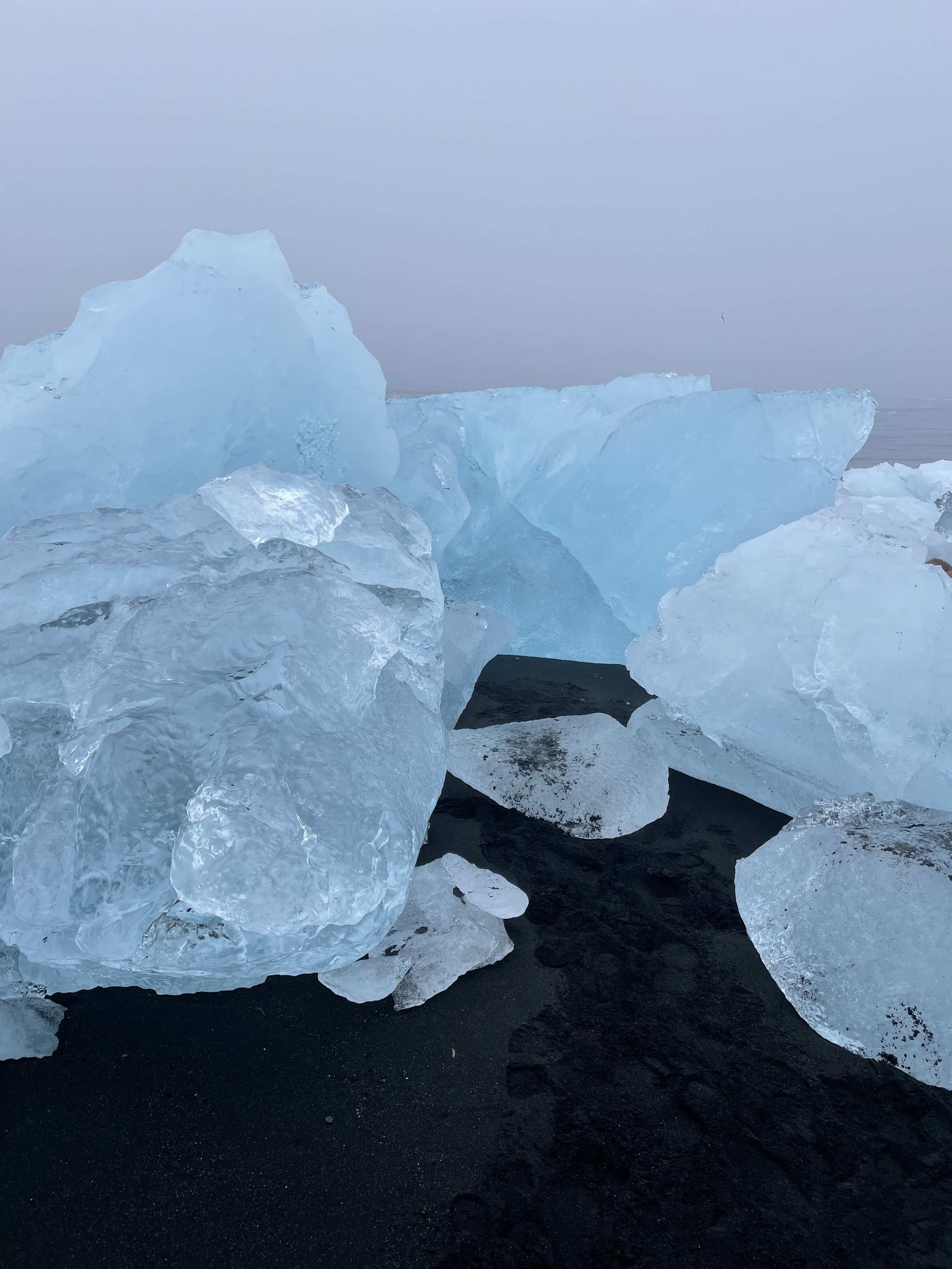 Shards of white and turquoise tinkled against one another in the shallow surf like a field of broken glass. They rested upon the sand as an ever-shifting exhibition hosted by resident artist Mother Nature herself, showing off that week’s finest pieces. Admire them quickly, for they won’t last. Sweetwater tears borne of ancient ice wept down their faces, pattering into the inky sand before rejoining with the saltier seas. Finally returned to a home they’d last visited a thousand years ago.