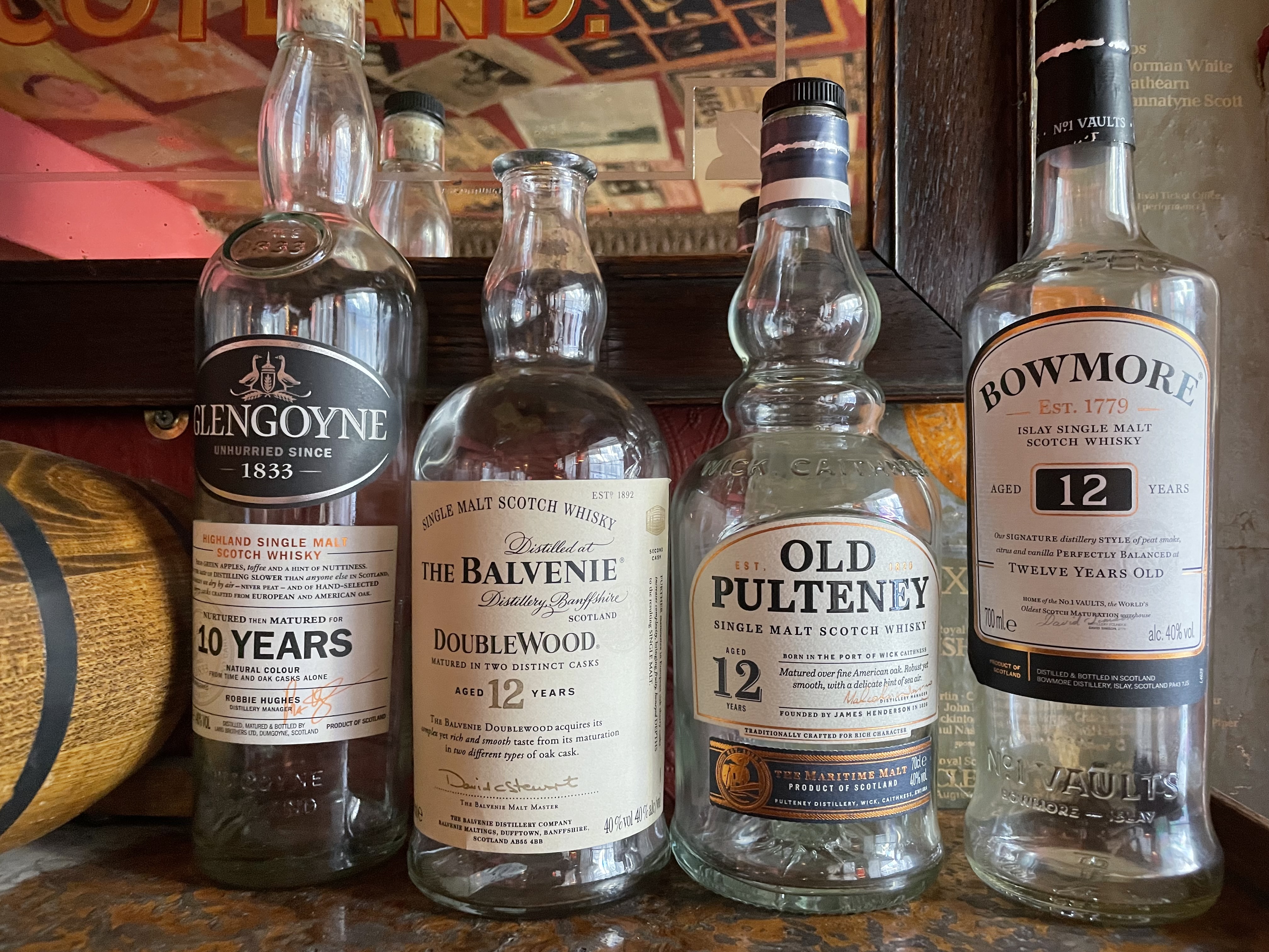 Scot-speare gravitated towards the center of this stage. He monologised for two solid hours while simultaneously herding our clowder of increasingly drunken cats through a taste tour of the Scottish countryside. A series of four bottles would teleport us to the major regions of Scotland’s distilleries (Speyside, Lowland, Highland, and Islay) while our feet remained safely on the floor. I think I prefer barstool travel over the regular armchair kind.