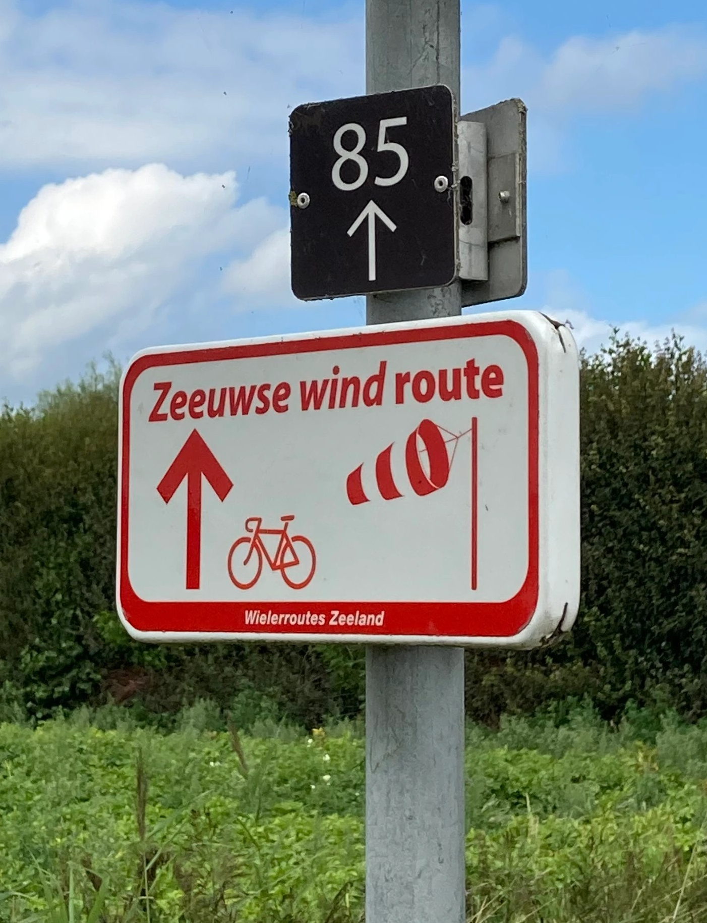 The wind is so ubiquitous that the Dutch will often build two parallel bike paths: one that’s exposed to the wind, for instance along the ridge of a dyke where you can battle the wind in exchange for a sea view, and another that’s partially sheltered. I say partially sheltered because the only time you can’t feel any wind at all is during brief magical intervals where you’re headed in precisely the same direction as the fickle beast. Maybe the road curves in just the right direction or the weathervane squeaks a few degrees in your favor. Then all becomes quiet besides the sound of your tires chewing up the pavement. Movement becomes effortless. 120 kilometres seems like child’s play. Eventually the road curves back or the weathervane squeaks and the headwind – somehow it always feels like a headwind – comes screaming back. Even stark heading changes rarely do shit. A 90° turn will, at best, turn down the wind’s fury by a fraction of a percent. A 180° turn, which I had a lot of experience with since I would decide not to stop for a picture and then immediately think better of it, just meant all the hair that had escaped my ponytail would blow right across my face rather than to the left.