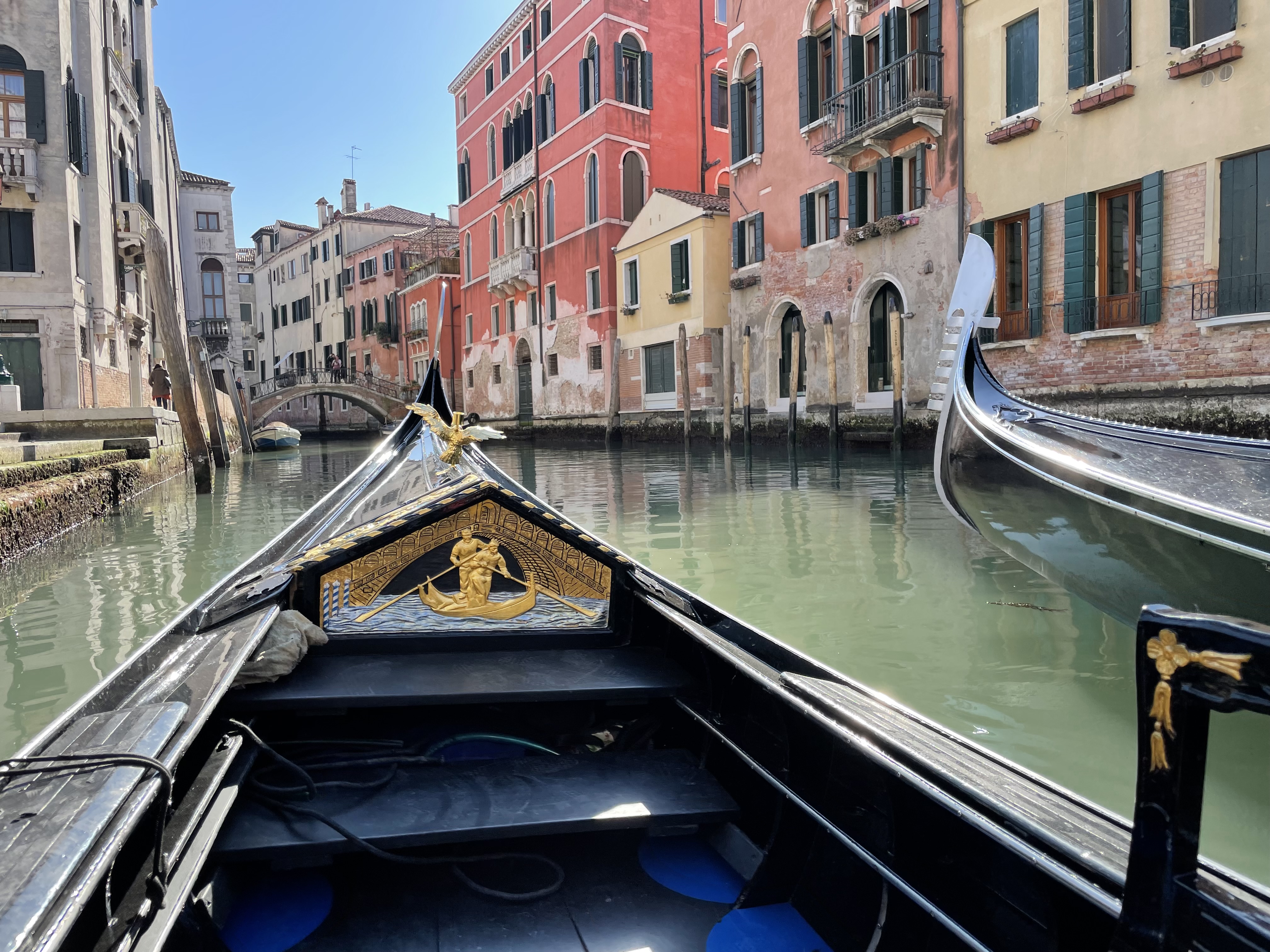 The official price for a 30-minute gondola ride was 80 Euro per boat, but our tour guide had encouraged us to haggle. That’s a game I’ve never been very good at. Fortunately the loud Irishwoman took the lead, invoking Ireland’s financial woes in her bid to get us a cheaper price. Anzolo volleyed, laying on the compliments and then, when that didn’t work, invoking Venice’s pandemic-related financial woes in his bid to extort us. The rest of us awkwardly followed this first-world-problem exchange like it was Wimbledon.