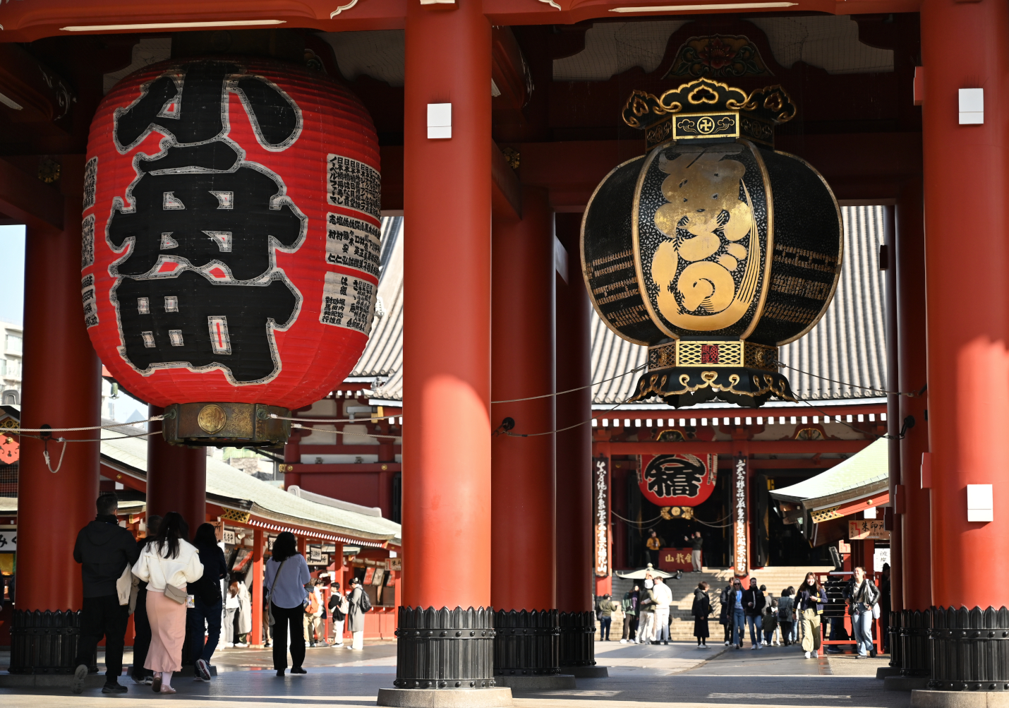 Left top: Hōzōmon Gate at Sensō-ji Temple / Left bottom: Yasin at Sensō-ji Temple / Right: Bulbasaur and Squidward latte art (made just from foam!)
