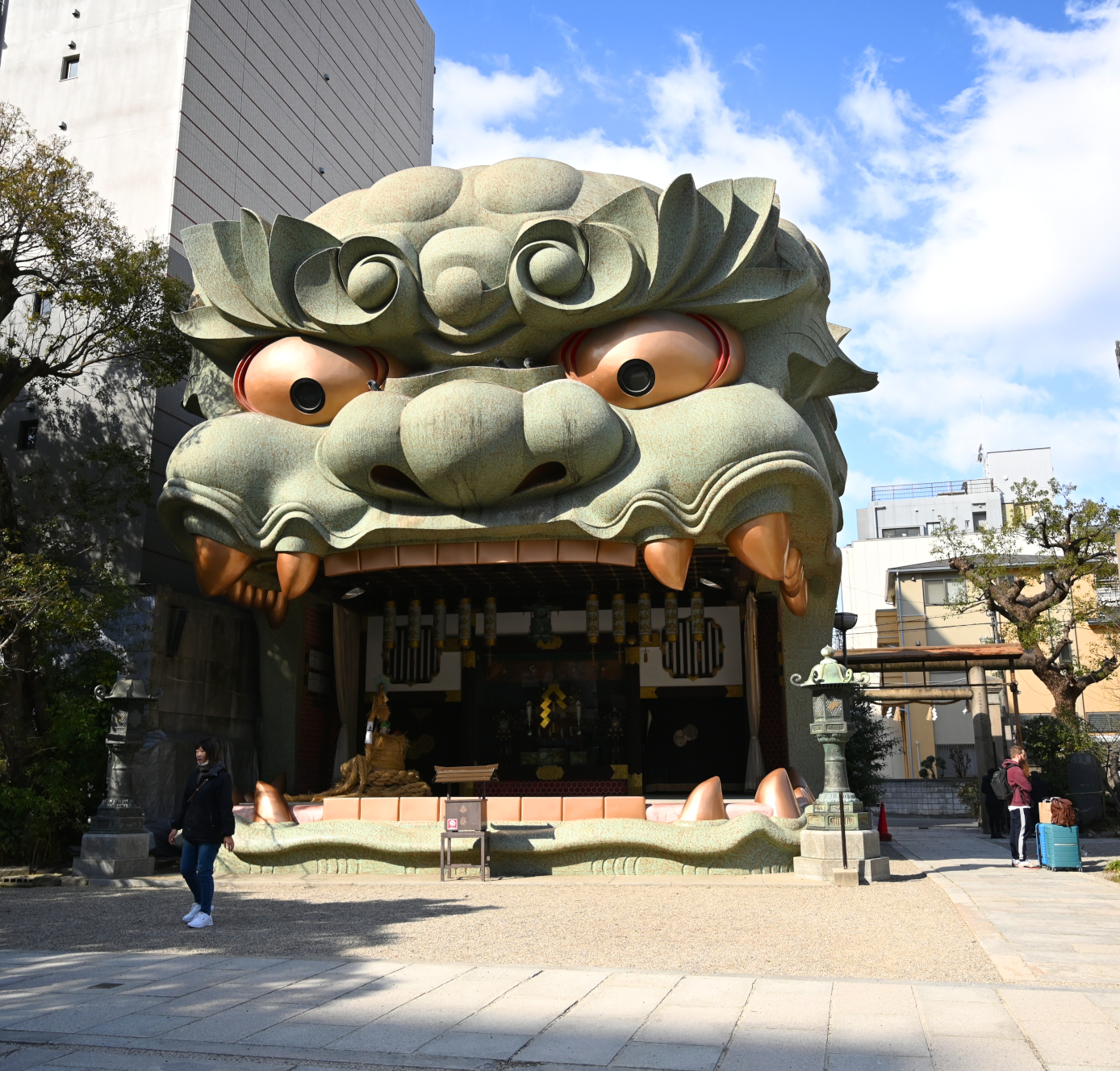 Our whirlwind half-day tour through Osaka left much to be desired, time most especially. Upon arrival at the train station we haphazardly chose a luggage locker and stashed our bags, then spent half an hour extracting ourselves from the metro station because Japanese stations are essentially underground cities and we kept getting either lost or sidetracked (Eki stamp…ATM…bathroom…). Finally topside, we passed beneath the shadows of a Hansel-and-Gretel candy hotel and a sushi-wielding octopus to get to the Namba Yasaka Jinjya Shrine, which is supposedly shaped like a lion’s head but to my uncultured Western eye looks much more like a dragon’s. The sun was on our side at least as we devoted the bulk of our morning to visiting [the outside of] Osaka Castle. It somehow looked both exactly and nothing like I’d expected a “Japanese castle” to look. Somewhere between a fat pagoda and a tiered wedding cake, its layered mint-green copper roofs were accented with jauntily upturned edges and its whitewashed wooden faces were gilded with gold. At any rate it had a much more welcoming vibe than Tokyo’s Imperial Palace and that Sunday it was a buzzing beehive of humanity; mostly tourists, interspersed with herds of local runners using the castle’s jogging route. We finally meandered back near our luggage location by using an AirTag in my bag to orient ourselves. Our final group task was to secure a whole jiggling cheesecake, which was easily the size of my face and piping hot fresh from the oven. For once, the Instagram hype lived up to the experience – the lightly sweet and fluffy cheesecake tasted just as good as it looked. We sat and ate the entire thing on the sidewalk under the sun.